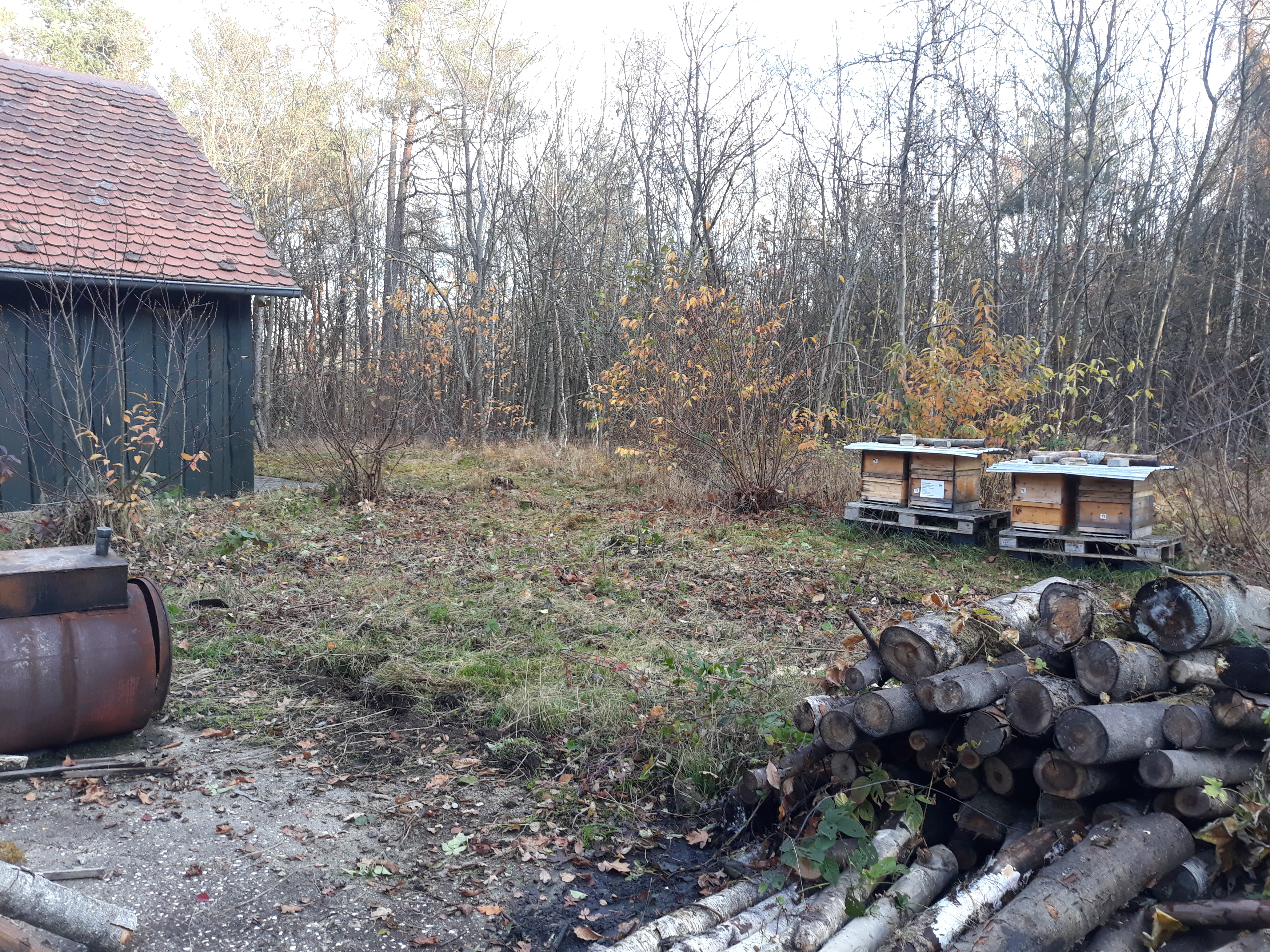 Anfang 2020, in der Zeit vor Corona, wurde – nach Beschluss des vorherigen Vorstands – eine Teilfläche am Lehrbienenstand gerodet, um mehr Licht für die Bienenvölker und Kurse zu erhalten.