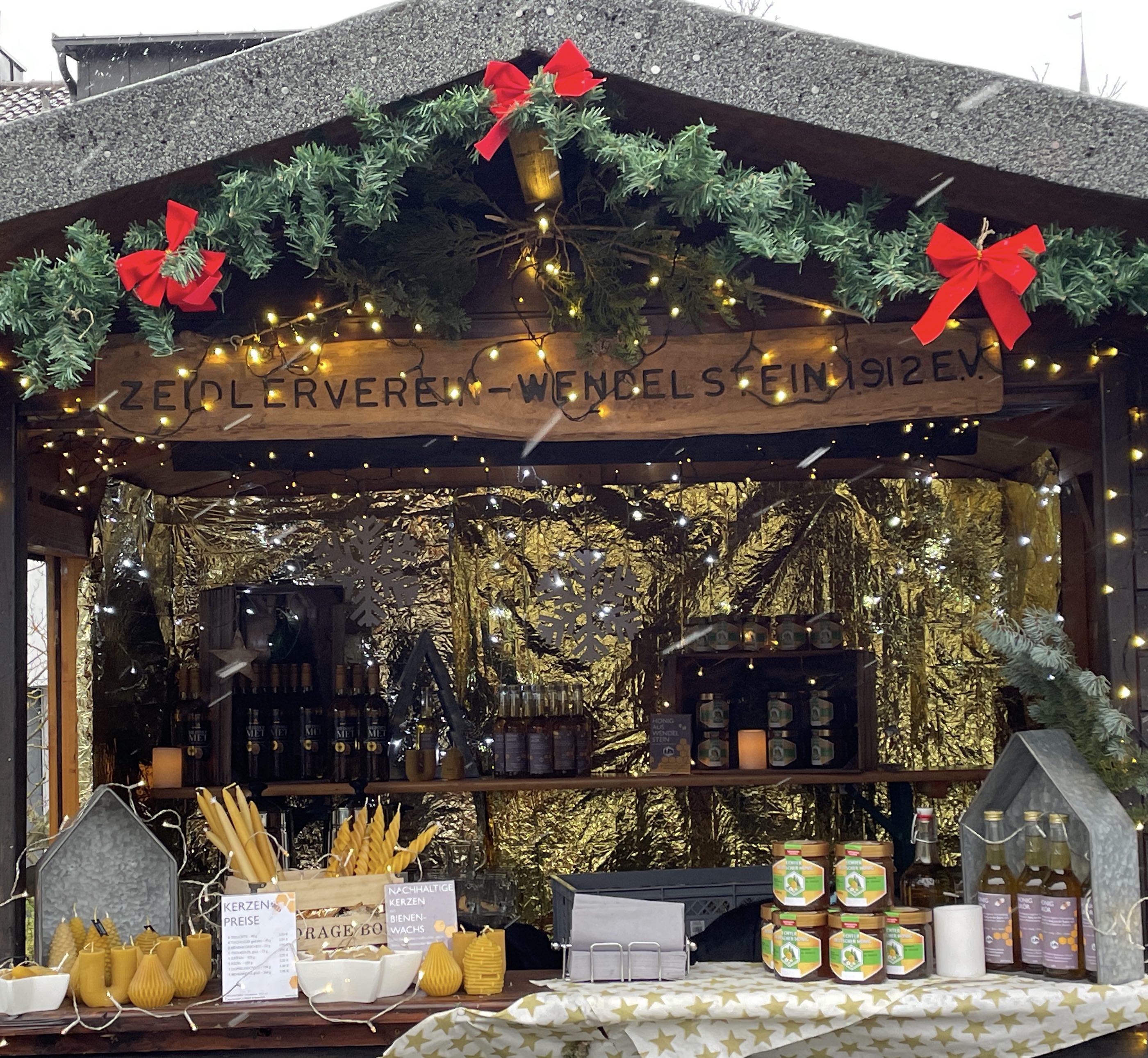 In Kleinschwarzenlohe und am Wendelsteiner Weihnachtsmarkt boten wir unsere Produkte an und hielten interessante Gespräche mit der Kundschaft über unsere Tätigkeit im Verein und den Aufgaben, die das Imkern mit der Honigbiene mit sich bringen. Wie werden Honig und Wachs für die Eigenerzeugnisse gewonnen? Hier konnten Fragen gestellt und beantwortet werden.