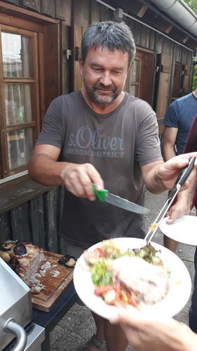 Das Bienenjahr neigt sich nun dem Ende zu und zum Abschluss wurde am 27. Juli gemeinsam am Lehrbienenstand Königshammer gegrillt und gefeiert. Das Fässchen Bier wurde noch von dem mittlerweile leider verstorbenen 1. Vorstand Jens Bahner gestiftet, an den Thomas Pfaffinger, sein Nachfolger im Amt, mit seinen Eröffnungsworten erinnerte. Das Sommerfest war gut besucht und wir Neuen freuen uns schon gemeinsam auf das kommende Jahr - dann als Jung-Imker.