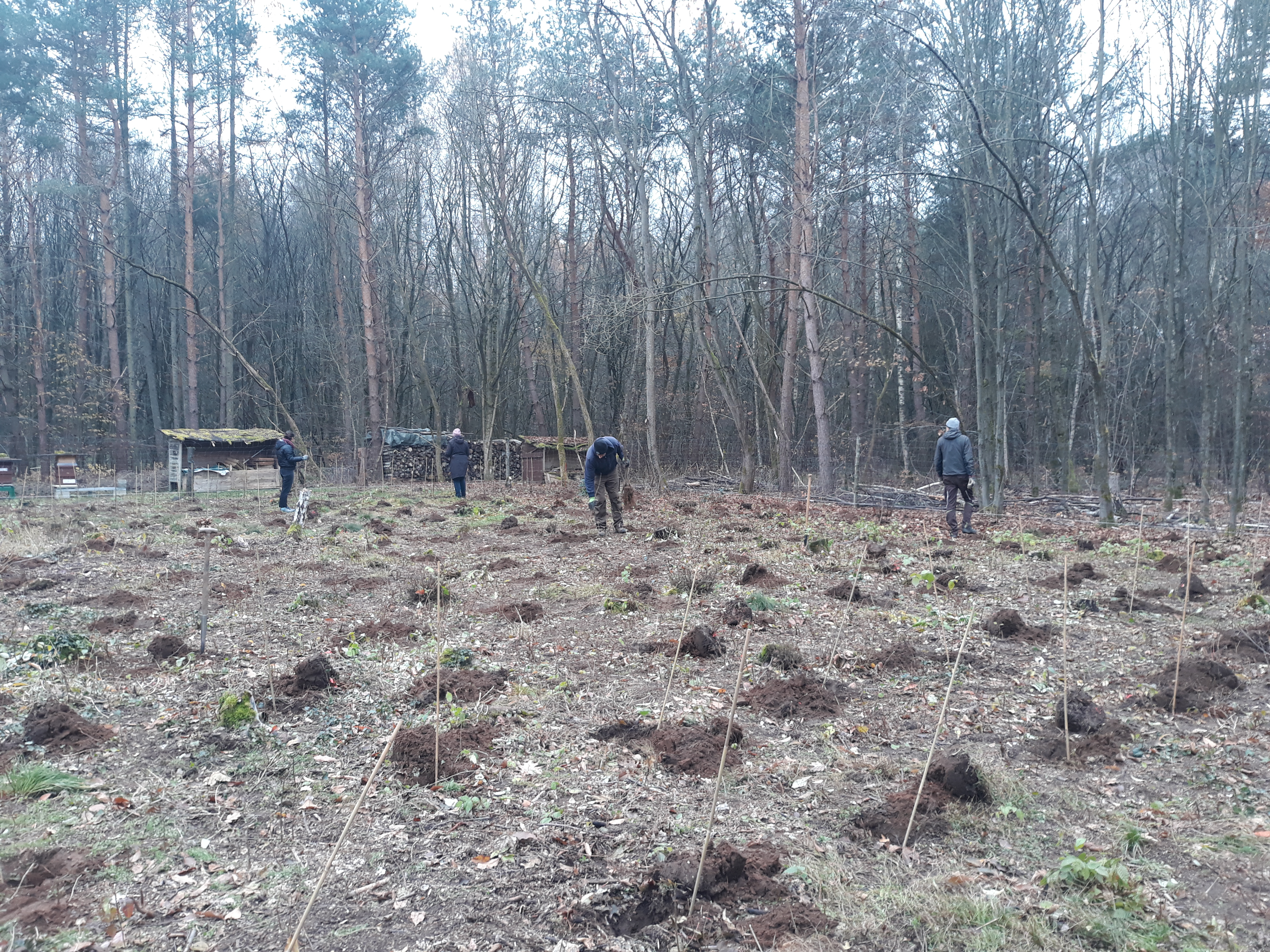 Mit einem tollen Helferteam wurden – Löcher ausgehoben, Setzlinge gepflanzt,